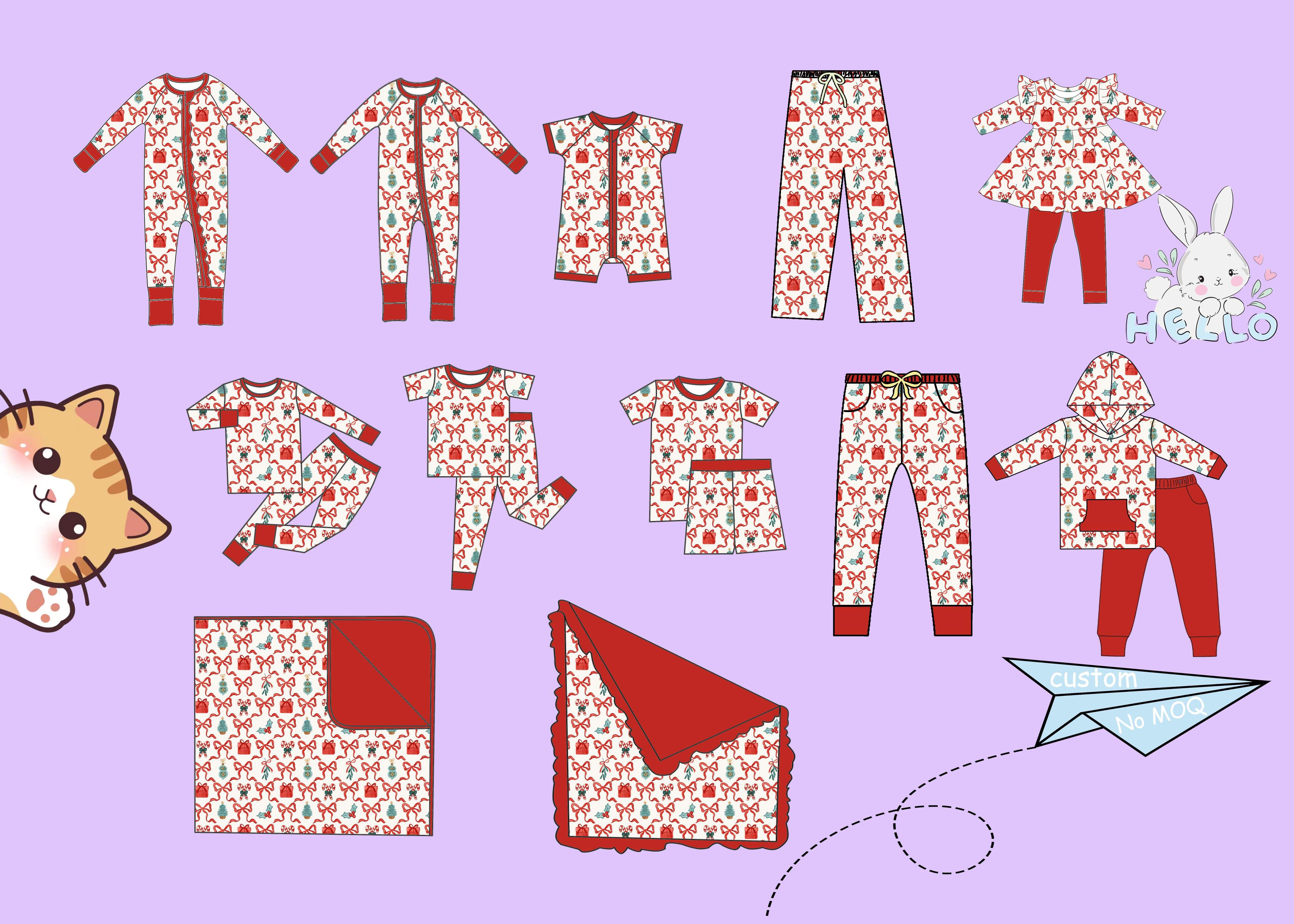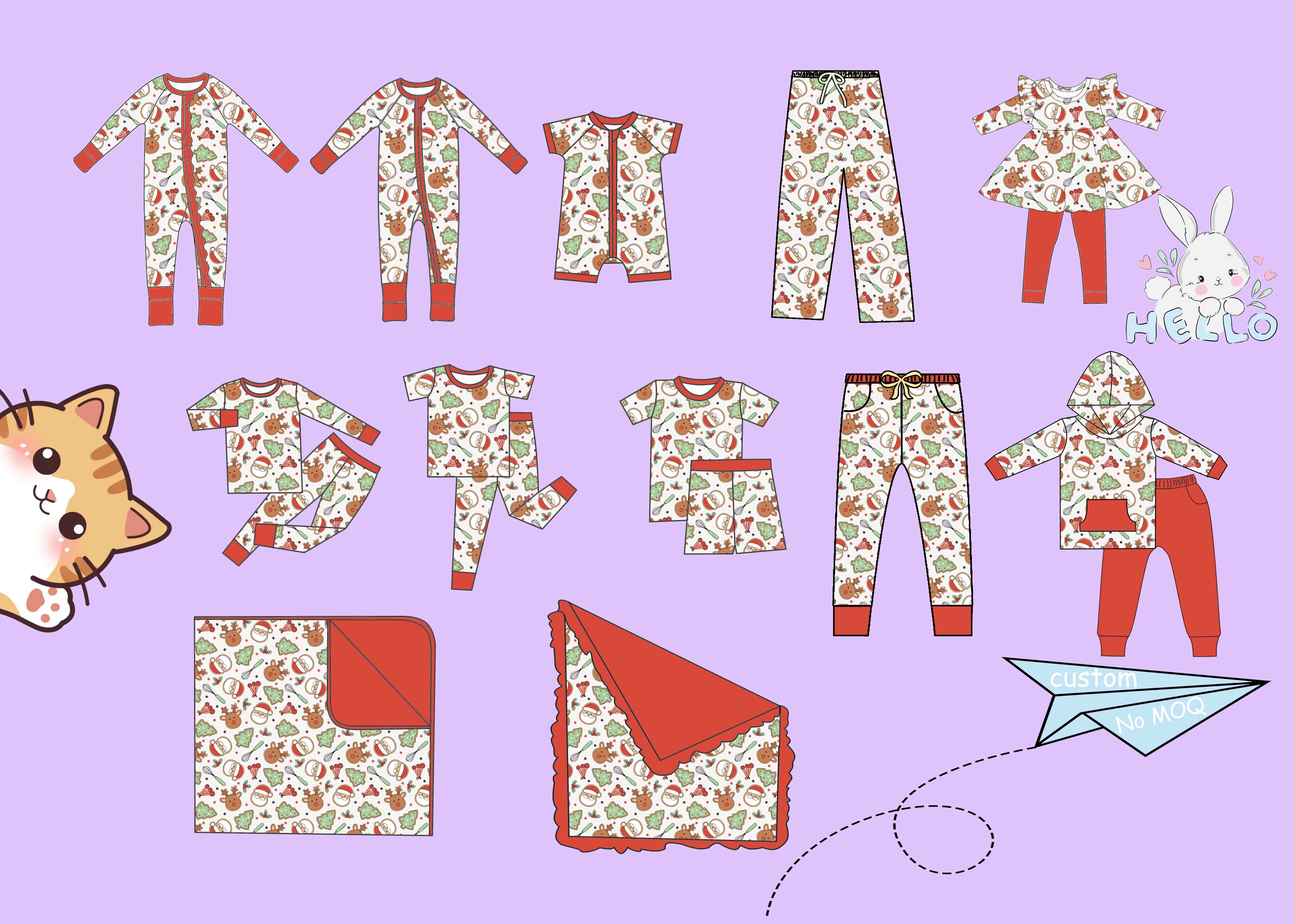 Qingli OEM مخصص مصنع ملابس بيجامة مجموعات لينة طويلة الأكمام ملابس نوم أزياء عيد الميلاد طباعة الخيزران الزي