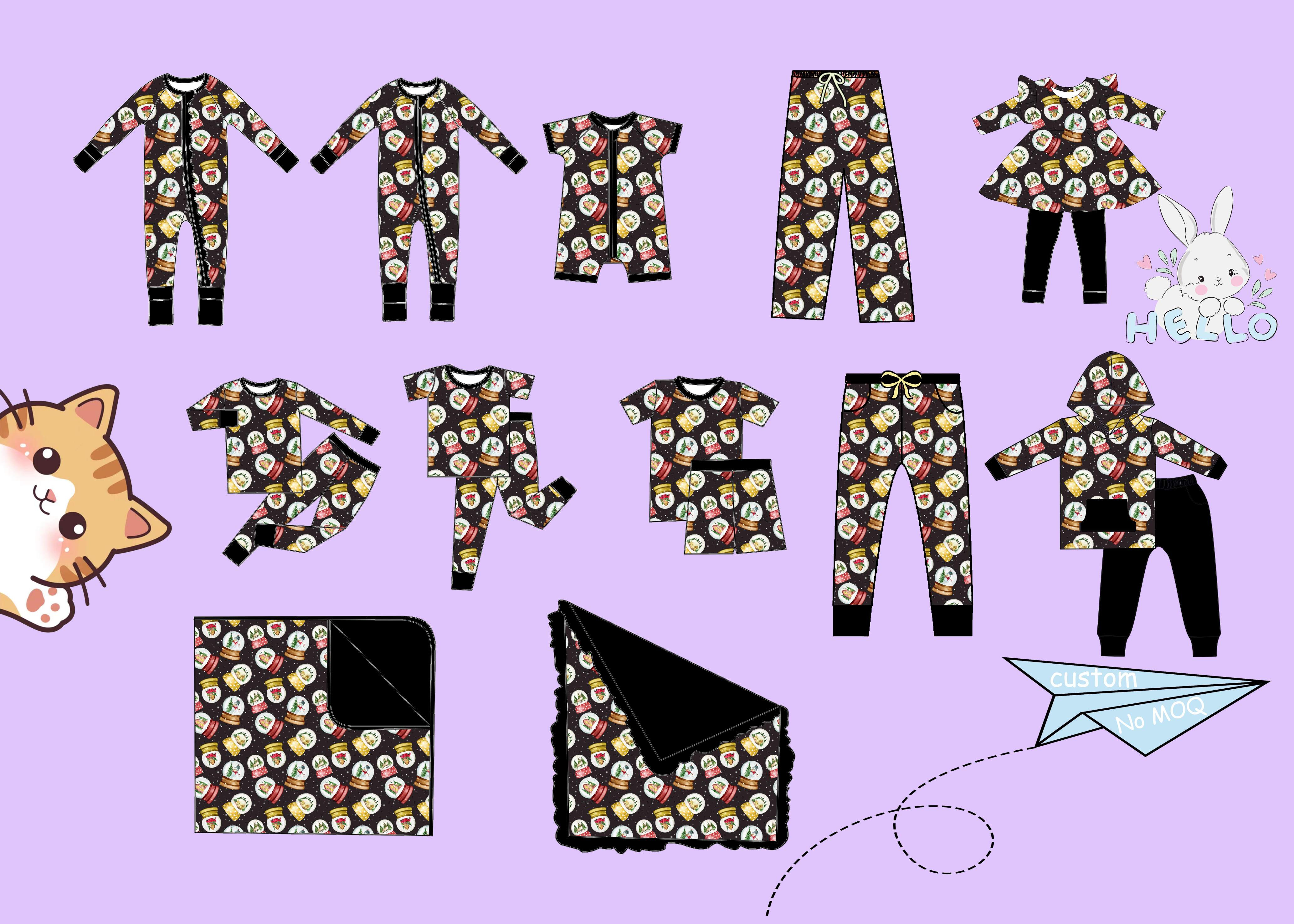 Qingli oem מותאם אישית מפעל בגדים פיג 'מה סטים רך ארוך שרוול והלבשת אופנה חג המולד הדפסה במבוק
