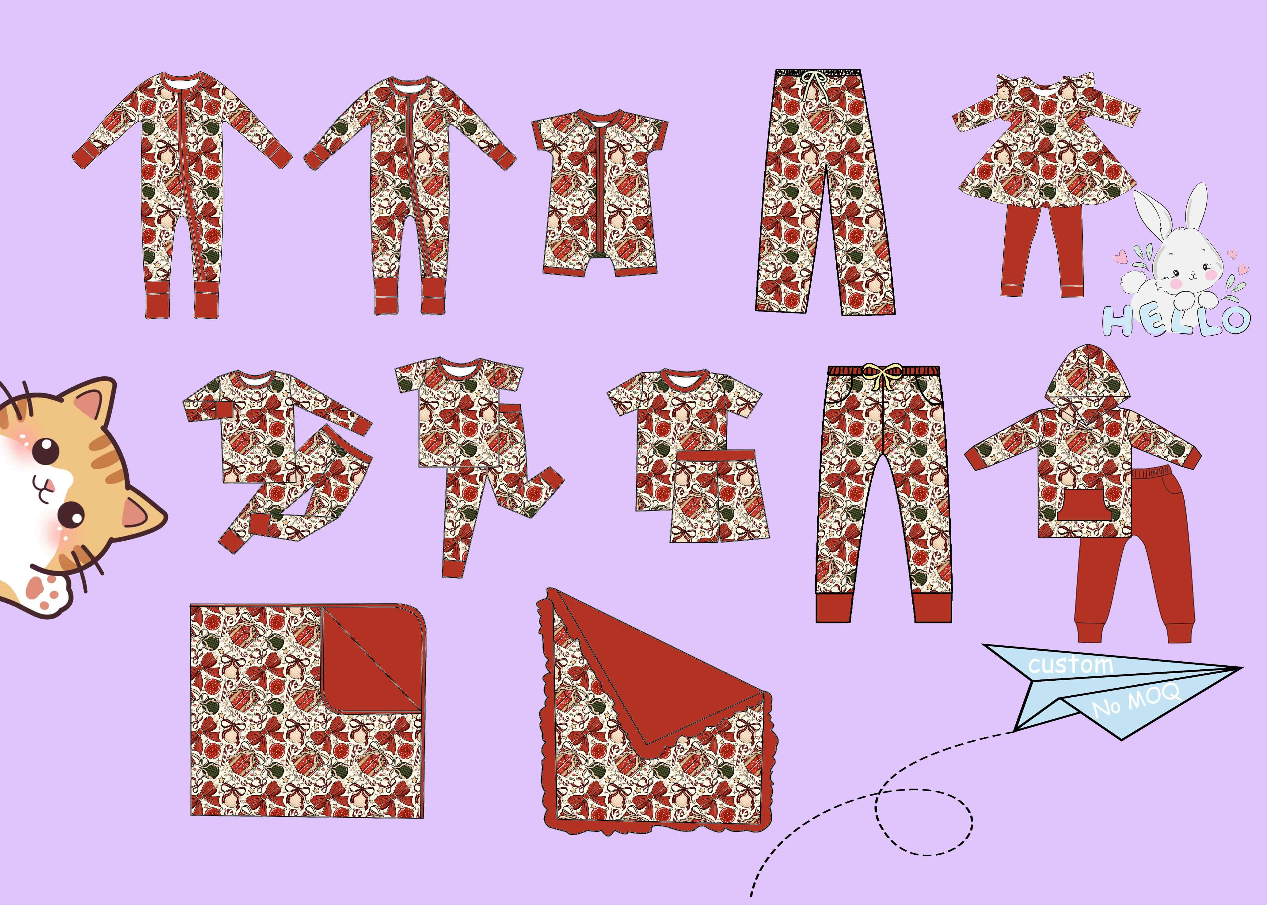 Qingli OEM set di pigiama di abbigliamento personalizzato per la fabbrica di abiti da notte morbidi a maniche lunghe alla moda con stampa natalizia in bambù