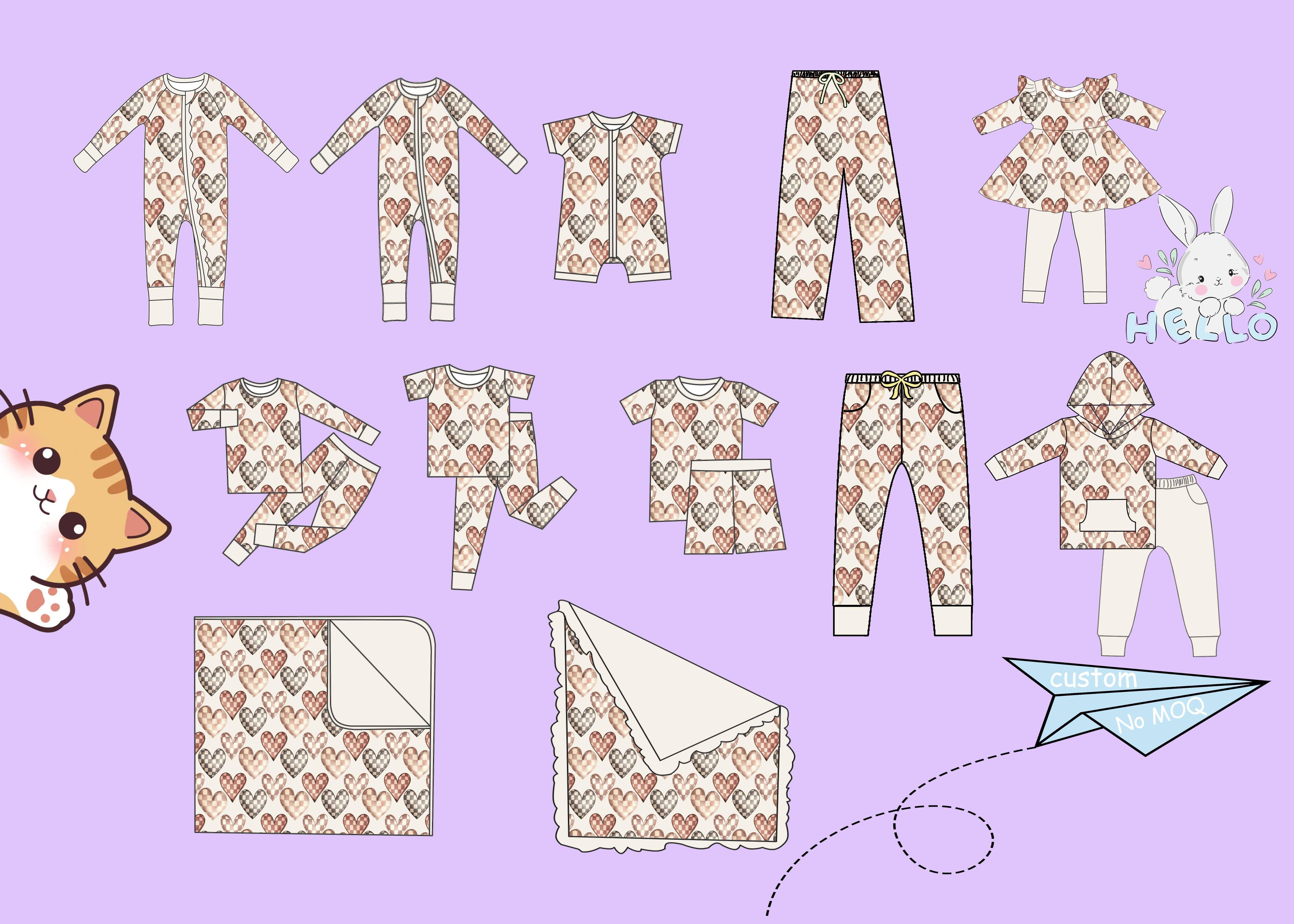 Qingli oem מותאם אישית בנות מפעל-מודפס עיצוב משובץ עם רוכסן התינוק rompajama לתינוק
